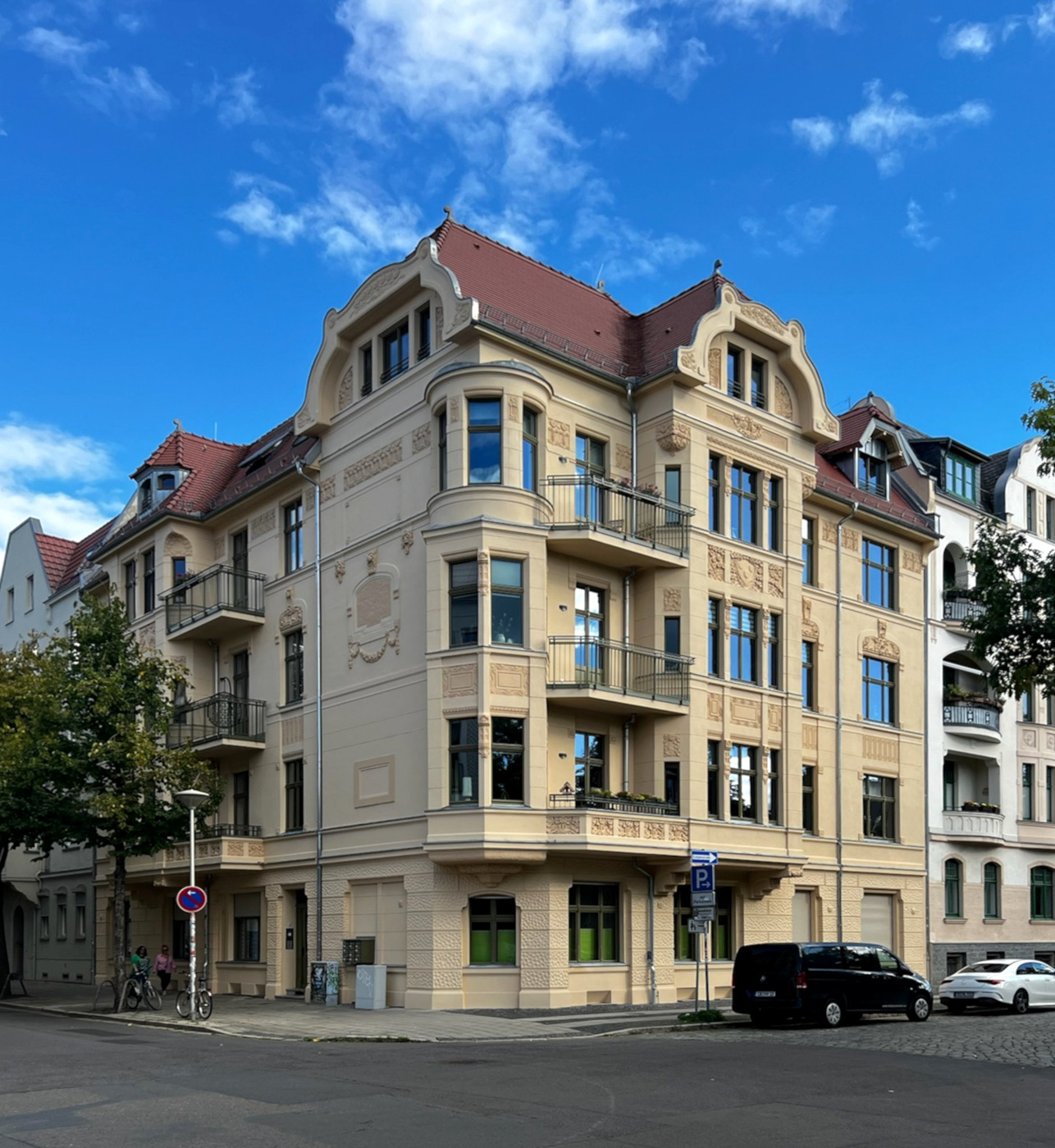 Die denkmalgeschützte Stadtvilla in der August-Bebel-Straße 11 exemplifiziert unseren ganzheitlichen Ansatz zur Revitalisierung historischer Bausubstanz. Hier verbinden wir respektvolle Denkmalpflege mit den Anforderungen modernen Wohnkomforts – einschließlich des Einbaus einer neuen Aufzugsanlage für barrierefreie Erschließung.