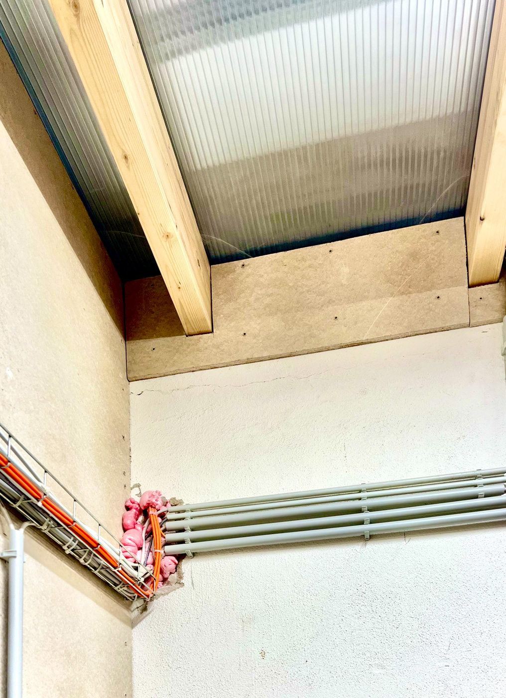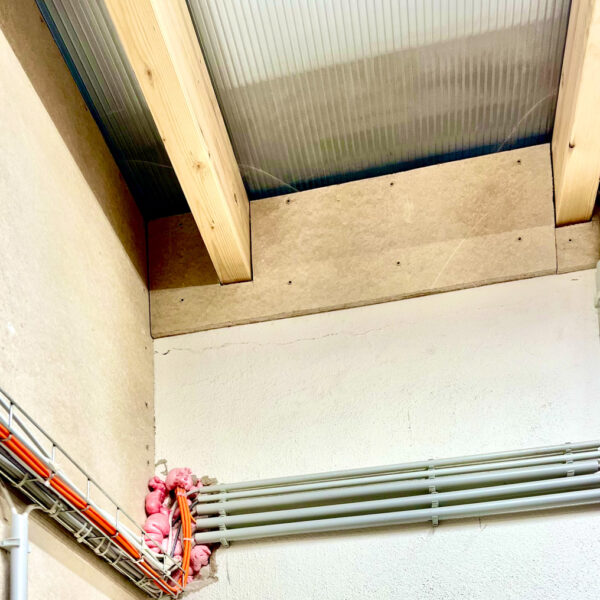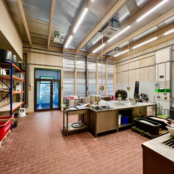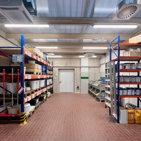 Unser Konzept basiert auf reversibler Holzbauweise im Bestandsgebäude – eine nachhaltige und flexible Lösung, die sich bei Bedarf rückstandslos demontieren lässt. Die Laborbereiche entstanden nach dem Haus-in-Haus-Prinzip: Lichtdurchflutete Holzkuben schaffen präzise kontrollierte Klimabedingungen für die hochsensiblen Betonforschungsprozesse. Transparente und geschlossene Zonen strukturieren dabei die unterschiedlichen Arbeitsabläufe.