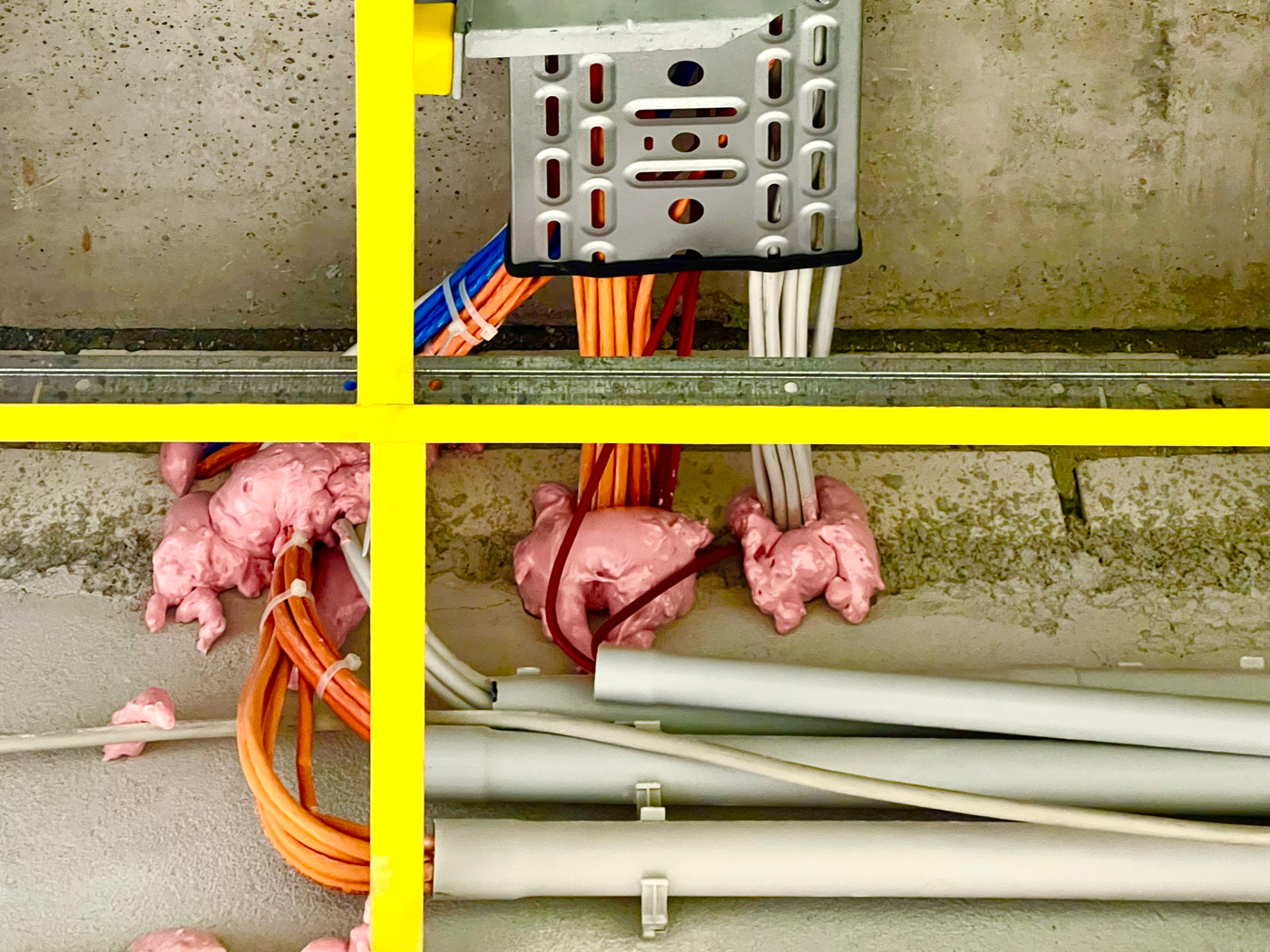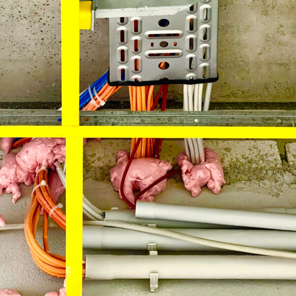 Der Bürobereich folgt einem besonderen gestalterischen Ansatz: Das „unfertige Produkt“ wird zur architektonischen Metapher für die Startup-Mentalität. Unter dem Leitbild „Baustelle gleich Schaustelle“ entwickelten wir Einbauten und Möbel, die den Baustellencharakter bewusst zelebrieren. Das scheinbar Unperfekte wird zum Leitmotiv einer Arbeitsumgebung, die Kreativität und experimentelles Denken fördert.